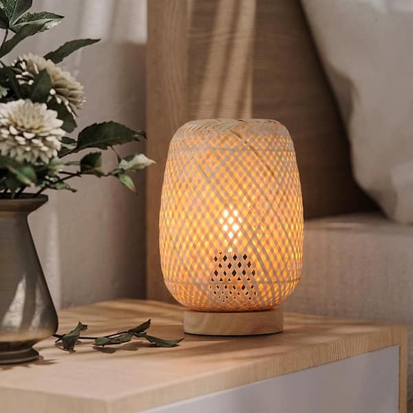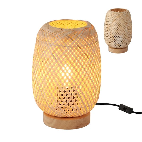 Modern 7.9 in. 1-Light Wood Base Table Lamp for Living Room with Bamboo Shade and Switch, E26 Base, not include bulb