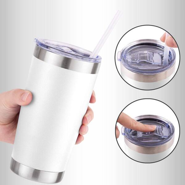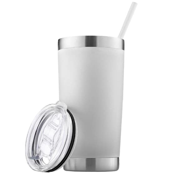 20 oz. Stainless Steel Insulated Tumbler with Lid and Straw - White