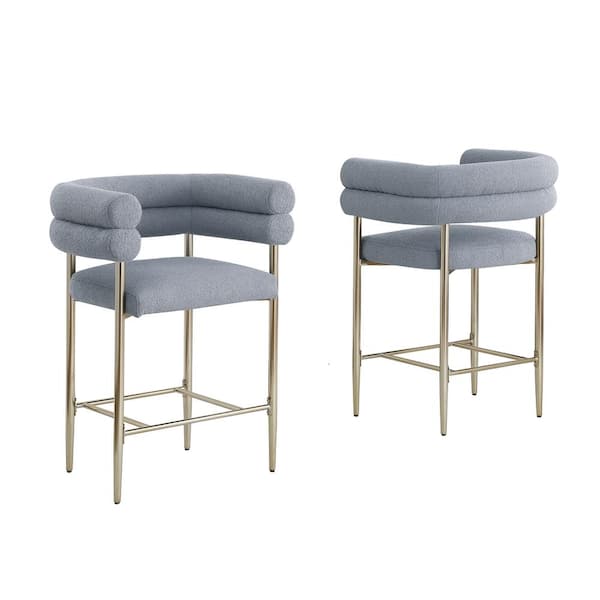 Zuria 24 in. Grey Low Back Wood Frame Counter Stool With Gold Chrome Iron Legs Teddy Fur Upholstery Set of 2