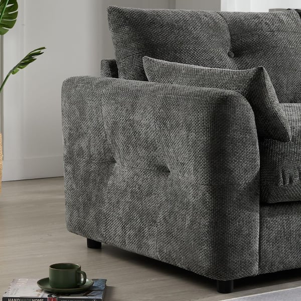 142 in. U Shaped 6-Seat Chenille Sectional Sofa in Gray with Movable Storage Ottoman, Cup Holder and USB Charger