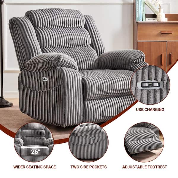 270° Swivel Corduroy Recliner Rocking Chair with Massage and Heating-Grey