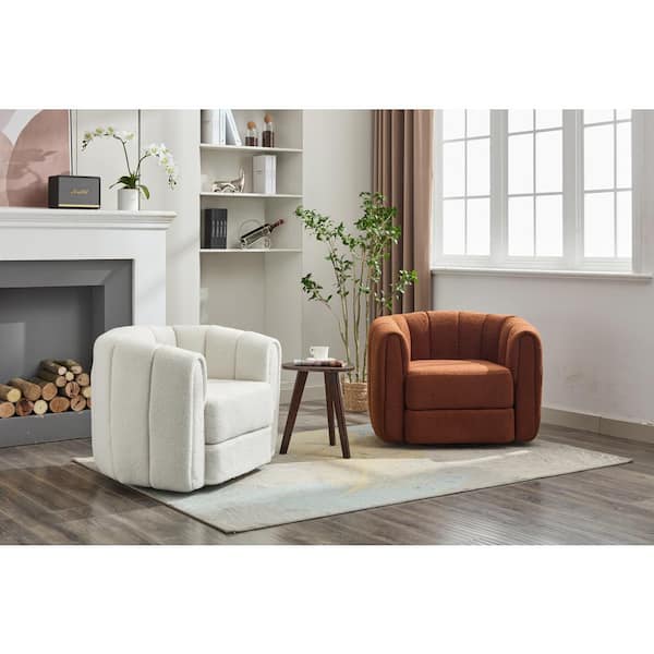 37 in. Teddy Fabric Plush Pumpkin Barrel Chair with Swivel (Set of 1) - Beige