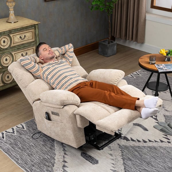 Beige High Back Chenille Power Lift Recliner Chair with 8-Point Vibration Massage and Lumbar Heating