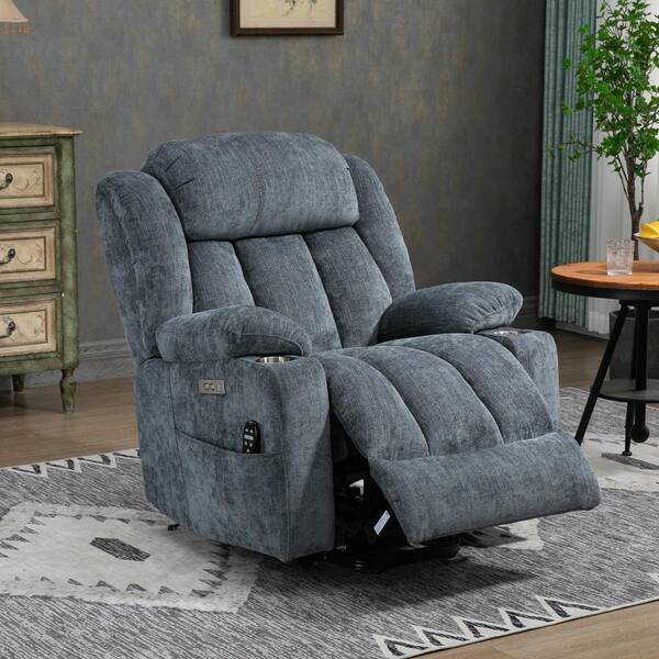 Blue Chenille Power Lift Recliner Chair with 8-Point Vibration Massage and Lumbar Heating, USB and Type-C Ports