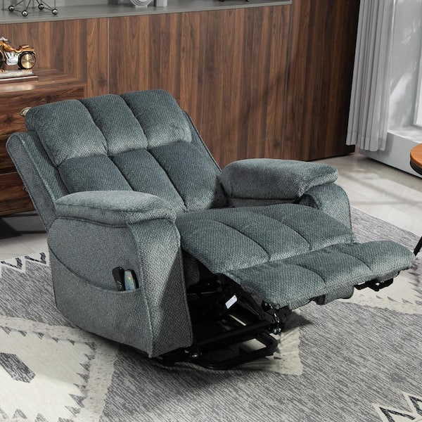 Blue Extended Footrest Comfort Chenille Power Lift Recliner with Pull-Out Storage, Massage and Heating