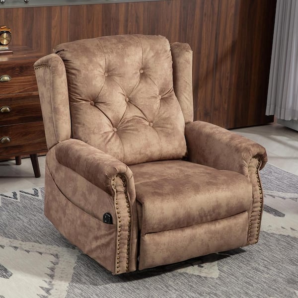 Brown Retro Velvet Power Lift Recliner with Nailhead Trim