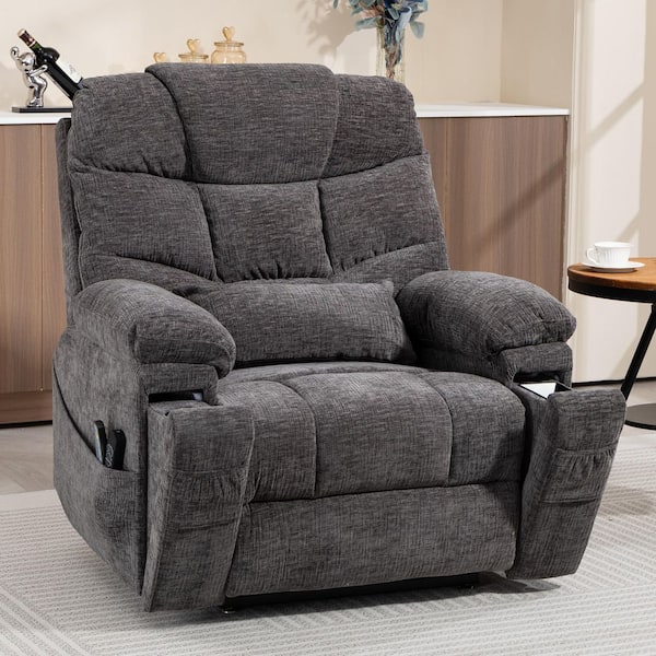 Functional Oversized Comfort Chenille Power Lift Recliner with Wireless Charging, Cup Holder, Massage and Heating-Grey