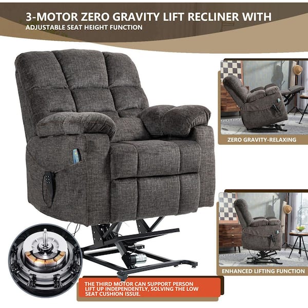 Grey 3-Motor Zero Gravity Power Lift Recliner with Armrest Storage, Massage and Heating