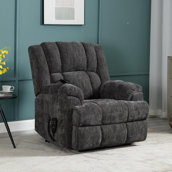Grey Dual Motor Heat Massage Infinite Position Up to 350 lbs. Chenille Lift Recliner with Medium-firm and Heavy Duty