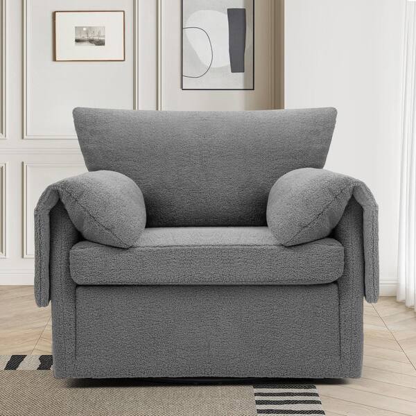 Grey Oversized Teddy Swivel Armchair - Modern Swivel Barrel Chair & Single Sofa Lounge,Comfortable Seating