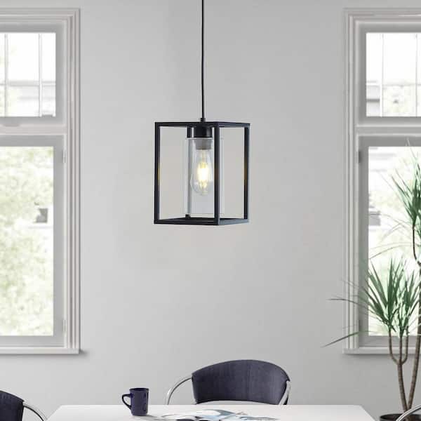 1-Light Industrial Black Square Pendant Light Farmhouse Island Retro Vintage Hanging Light with Glass and Metal Shades