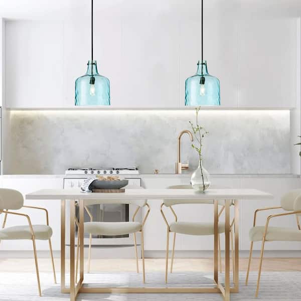 11.8 in. 1-Light Black Island Pendant Light Industrial Hanging Light with Blue Glass Shade