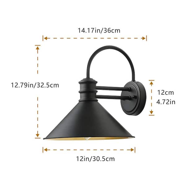11.81 in. 1-Light Black Indoor/Outdoor Hardwired Farmhouse Wall Sconce Gooseneck Barn Light No Bulbs lncluded