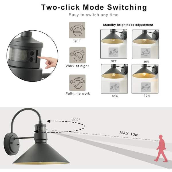 13.8 in. 1-Light Black Dusk to Dawn Outdoor Wall Sconce Gooseneck Barn Motion Sensor Wall Lights