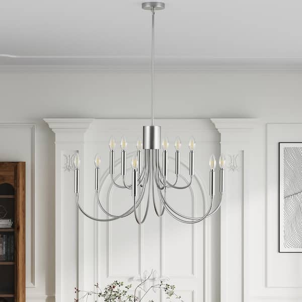 30.7 in. 12-Light Farmhouse Nickel Chandelier Rustic Candle Hanging Light Fixture