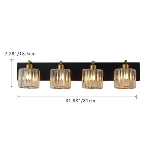 31.9 in. 4-Light Dimmable Gold Bathroom Vanity Light with Seeded Glass Shade