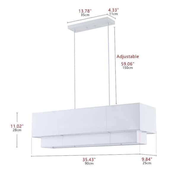 35.43 in. 3-Light Kitchen Island Off White Chandelier Modern Rectangle Pendant Light with Dual-layer White Fabric Shade