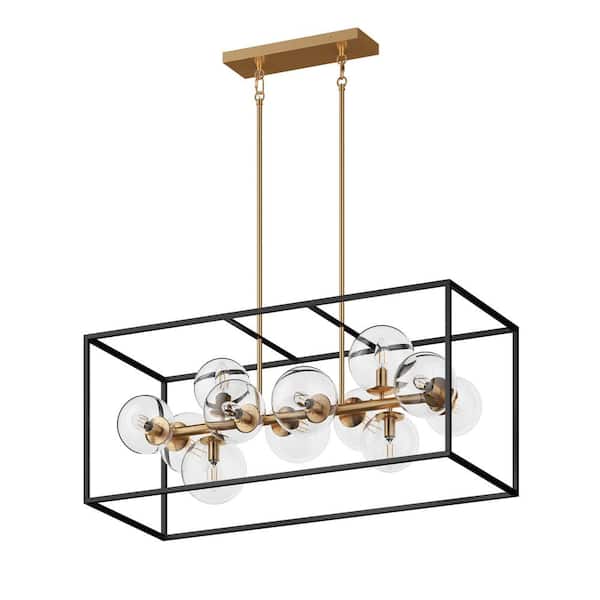 37.99 in. 12-Light Farmhouse Rectangular Chandelier Industrial Hanging Lighting with Clear Globe Glass Shade