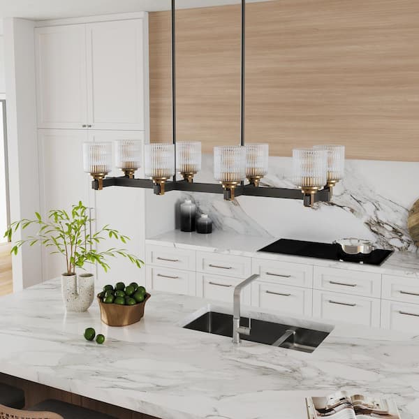 40.16 in. 8-Light Farmhouse Black Rustic Chandelier Kitchen Island Hanging Light with Clear Glass Cylinder Shade