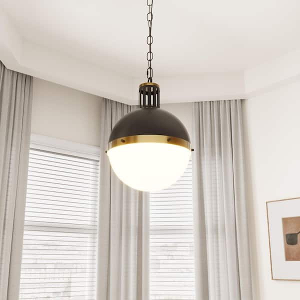 60-Watt Modern1-Light Gold Globe Pendant Light Adjustable Ceiling Light with White Glass Shade