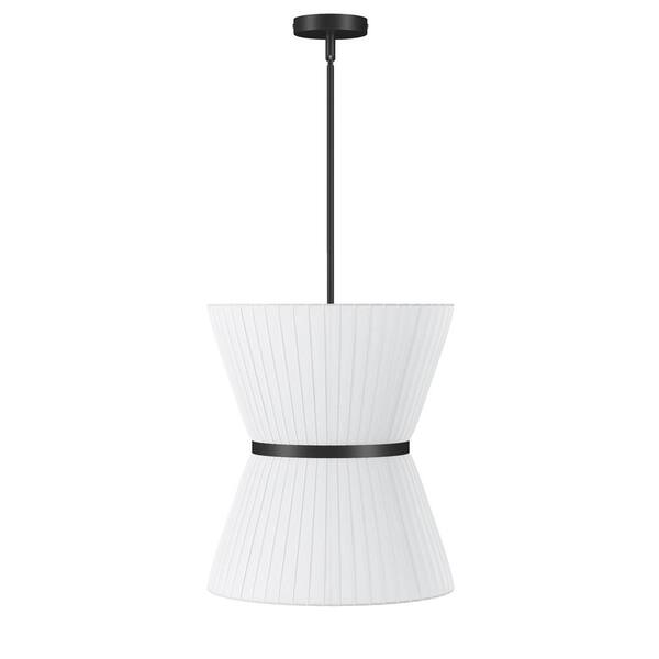 Modern Minimalist 15.35 in. 6-Light Pendant Light Adjustable Chandelier with White Fabric Shade