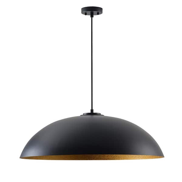 Vintage 30.91 in. 1-Light Black and Gold Dome Pendant Light Farmhouse Island Oversized Ceiling Hanging Light