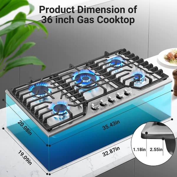 36 in. 5 Burners Recessed Gas Cooktop in Stainless Steel with NG/LPG Convertible Function