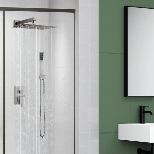10 in. 2-Jet High-Pressure Rainfall Shower System w/Square Head and Handheld Shower in Brushed Nickel (Valve Included)