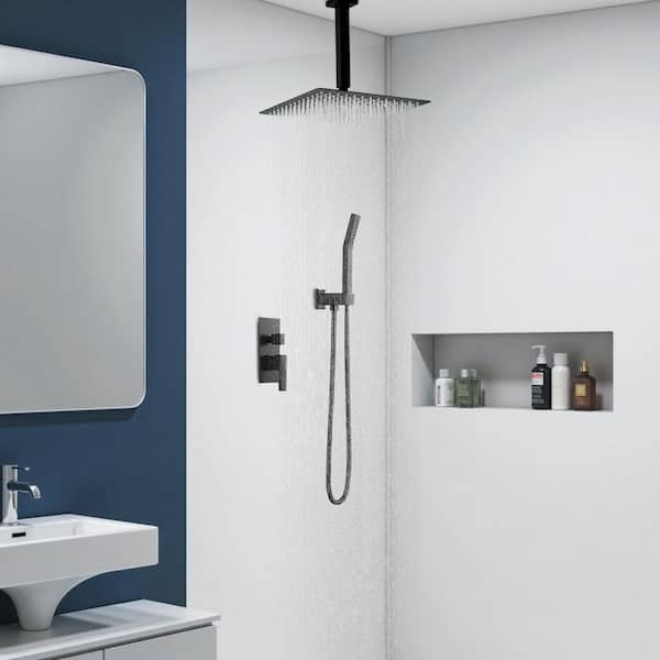 12 in. 2-Jet High-Pressure Mixer Set Rainfall Shower System w/Wall Mount Handheld Shower in Matte Black (Valve Included)