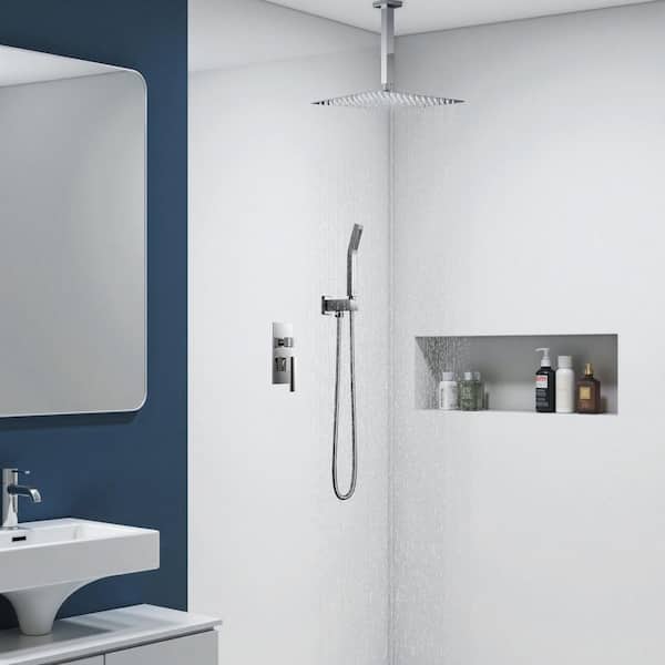 12 in. 2-Jet High-Pressure Rainfall Shower System w/Combo Set Wall Mount Handheld Shower Head in Chrome (Valve Included)