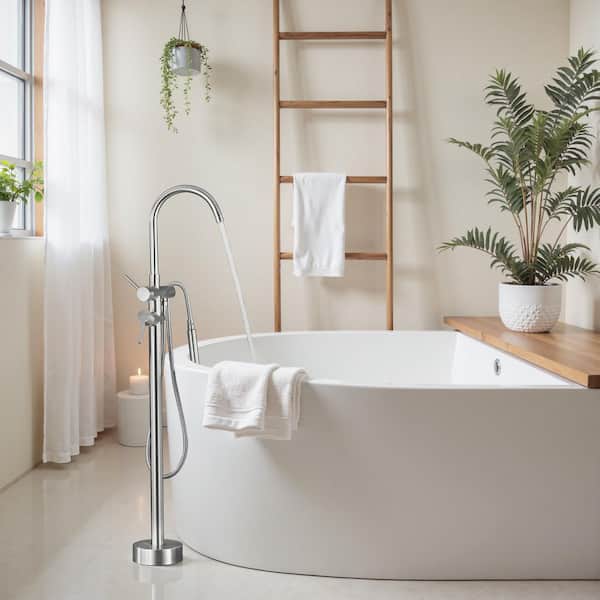 2-Handle Drip-Free Claw Foot Tub Faucet with 360° Rotation in Brushed Nickel