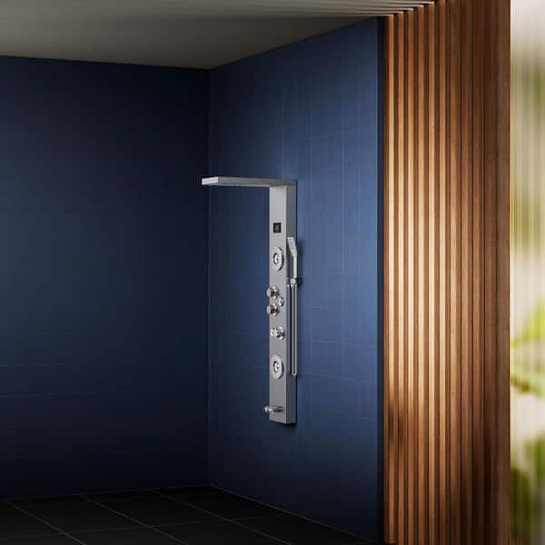 47 in. 6-Jet LED Shower Panel System with Rainfall Waterfall Shower Head Hand Shower and Massage Head in Brushed Nickel