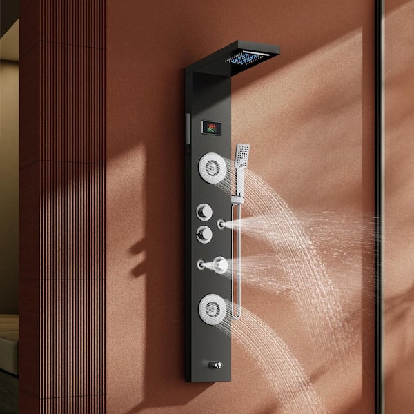 47 in. 6-Jet Rainfall Waterfall Shower Panel System with LED Adjustable Shower Head and Mist Massage Head in Matte Black