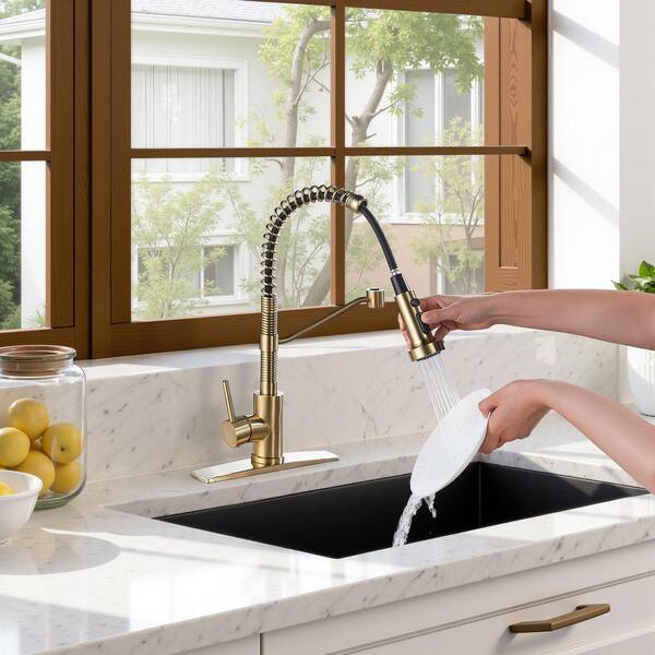 Single Handle Pull Down Sprayer Kitchen Faucet in Gold