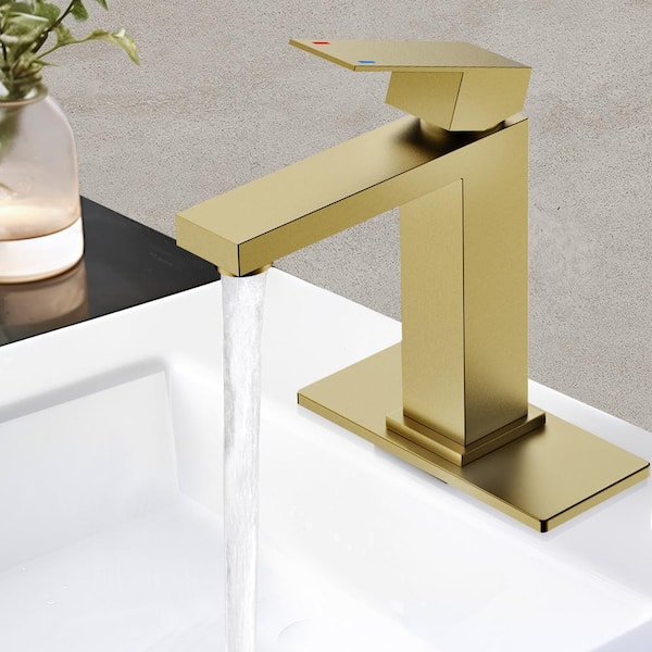 Single Handle Single Hole Bathroom Sink Faucet with Deck plate, Pop-up Drain and PEX supply line in Brushed Gold