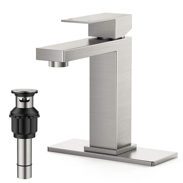 Single Handle Single Hole Mic Arc Bathroom Faucet with Deck plate, Pop-up Drain and PEX supply line in Brushed Nickel
