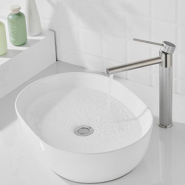 Single Hole Single Handle High-Arc Bathroom Faucet with Pop Up Drain in Brushed Nickel