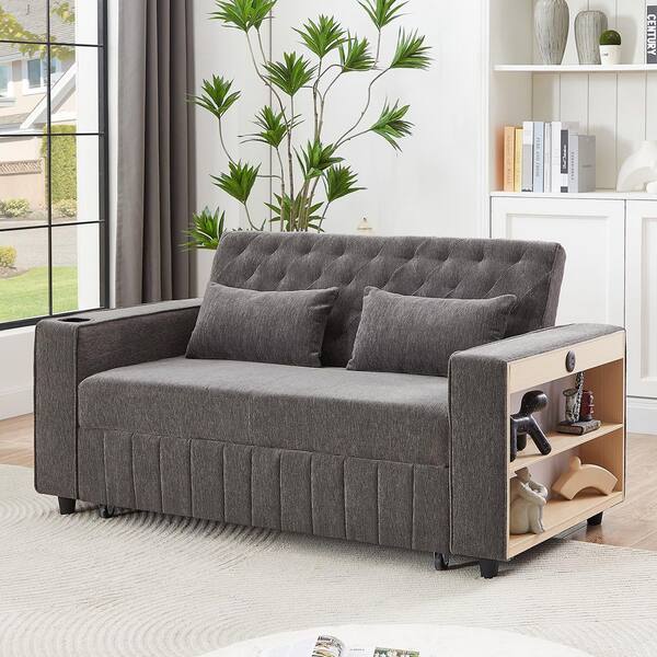 Luxury 61.41 in. W Gray Chenille 2-Seater Loveseat with Storage Rack and Charging Station