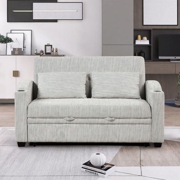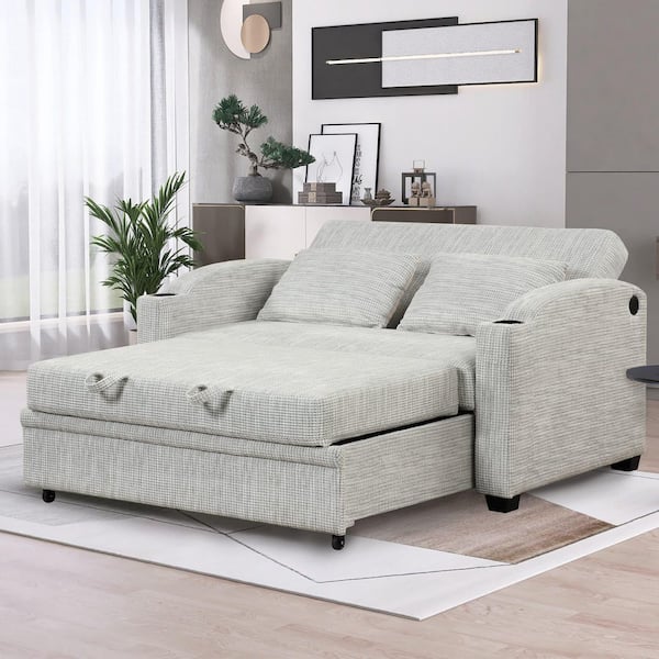 Luxury 61.42 in. W Light Gray Chenille 2-Seater Loveseat with Cup Holders and Charging Station