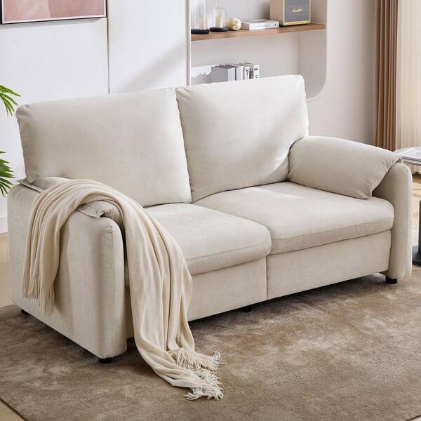 Luxury 71.26 in. Beige Chenille 2-Seater Loveseat with Pillow Top Arm