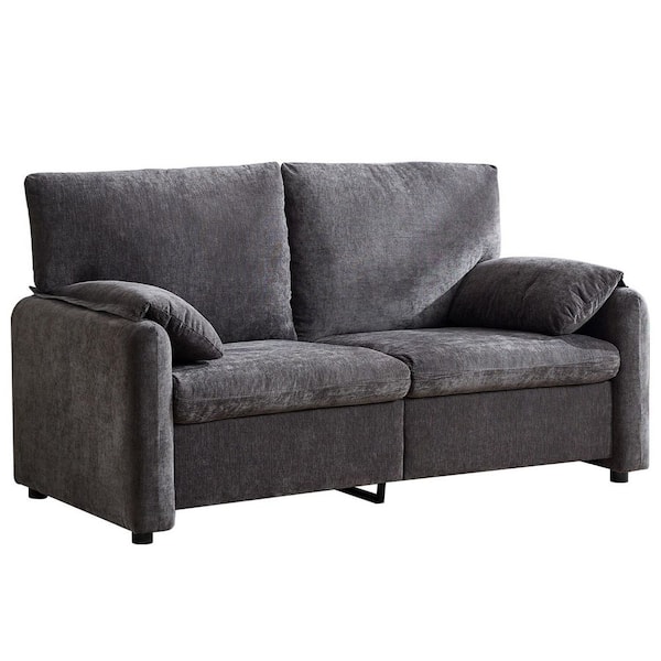 Luxury 71.26 in. Grey Chenille 2-Seater Loveseat with Pillow Top Arm