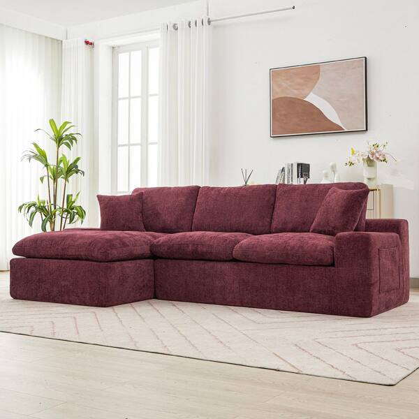 Luxury Collection 107.9 in. Square Arm 2-Piece Chenille L-Shaped Full-Compressed with Side Pocket Sectional Sofa in Red