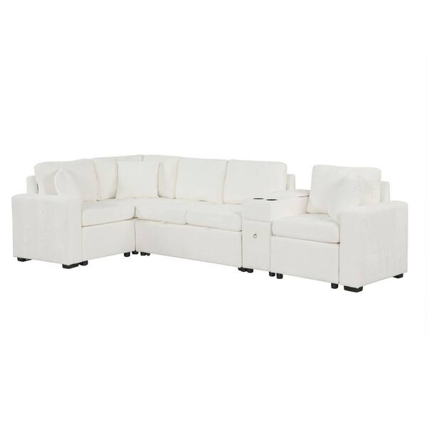 Luxury Collection 120.5 in. Square Arm 4-Piece L-Shaped Chenille Modular Sectional Sofa Bed in White with Storage