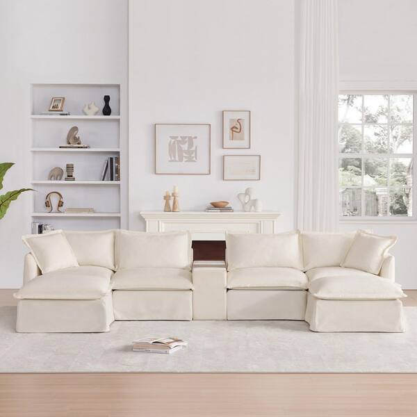 Luxury Collection 131 in. Flared Arm 6-Piece U-Shaped Chenille Sectional Sofa in. Beige with Charging Station & Storage