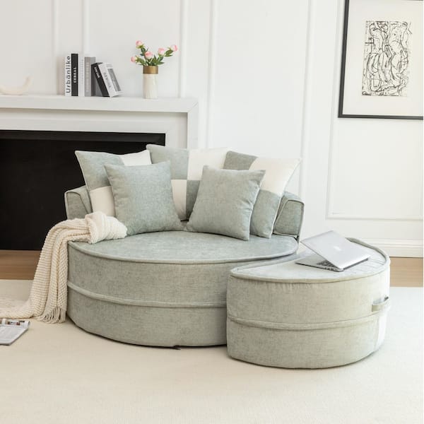 Luxury Collection Blue Chenille Upholstered Accent Arm Chair with 5-Pillows and Ottoman, (Set of 1)