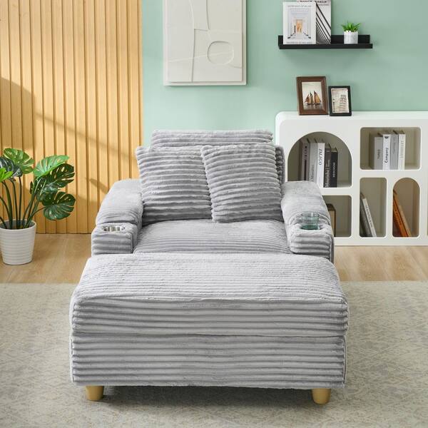 Luxury Collection Gray Corduroy Fabric Single Sofa Arm Chair with Cup Holder and Storage, Set of 1