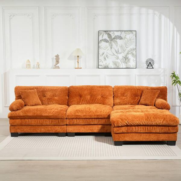 Modern 120.87 in. Pillow Top Arm Chenille L-Shaped Modular Sofa in Orange