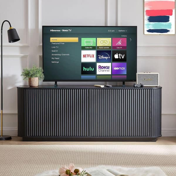 Modern Black Wood 64 in. Sideboard with Curved Edge and Adjustable Shelf