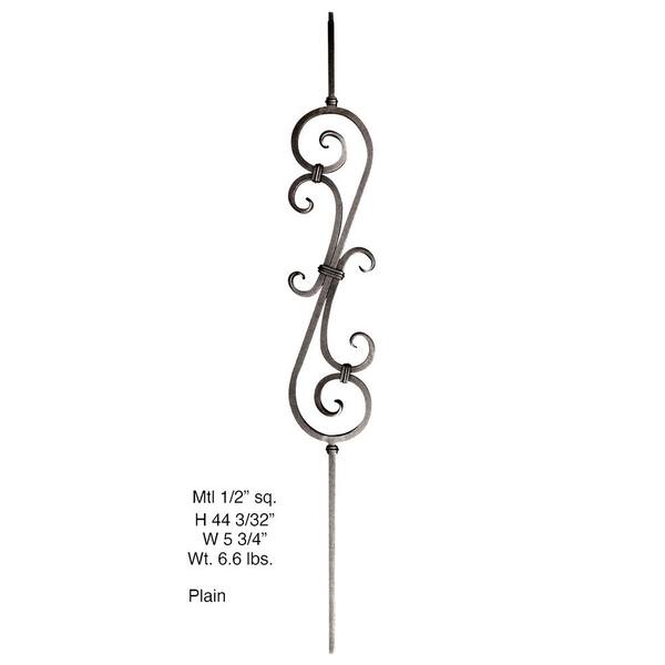 44 in. x 5-3/4 in. 22 in. Double S-Scroll Dark Champagne Powder Coated Wrought Iron Metal Stair Baluster