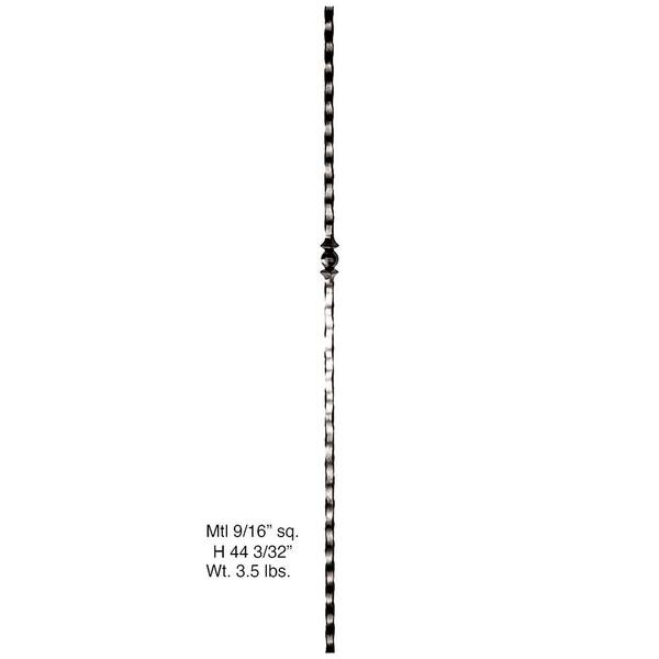 44 in. x 9/16 in. Hammered With Single Sphere Classic Black Powder Coated Wrought Iron Baluster